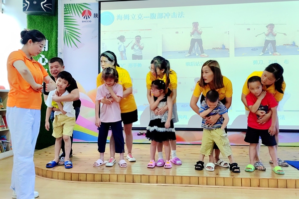 “我來試一試。”筱筱在醫(yī)生的一番示范后,積極上臺(tái)學(xué)習(xí)被氣道異物梗阻的自救方法。“醫(yī)生阿姨,我也要試一試。”孩子們躍躍欲試。“我家娃回來一直在唱防溺水兒歌,知道下水游泳需要大人陪伴。”一場(chǎng)專業(yè)有趣的安全知識(shí)互動(dòng)課一下抓住了孩子的心。