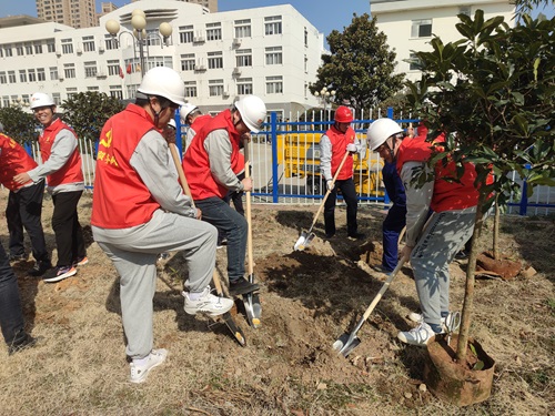 活動中,大家?guī)兹艘唤M分工協(xié)作,干勁十足,揮鋤挖坑、扶苗填土、澆水灌溉,忙的不亦樂乎。經過大家的共同努力,一棵棵新栽種的綠植在和煦的春風中昂然挺立,為廠區(qū)環(huán)境帶來一抹生機。