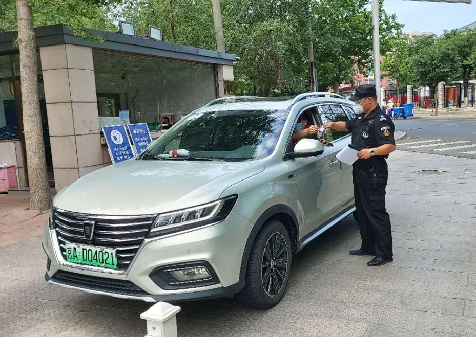對進(jìn)入單位的人員及車輛進(jìn)行測溫及檢查健康二維碼 胡玉新攝