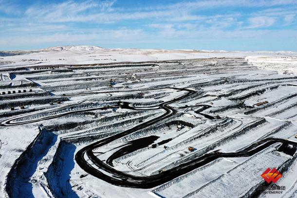 圖為雪后露天礦生產(chǎn)現(xiàn)場(chǎng)