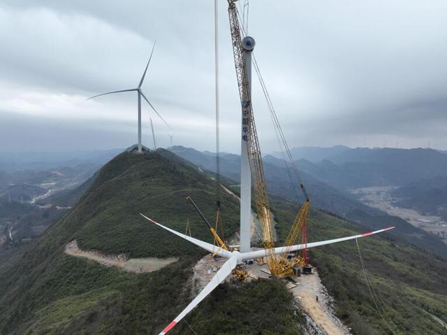 華電石柱萬(wàn)寶二期項(xiàng)目風(fēng)機(jī)葉片吊裝 華電重慶公司供圖