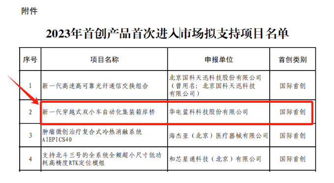 近日,華電重工所屬華電藍科科技股份有限公司“新一代穿越式雙小車自動化集裝箱岸橋”(簡稱“新型岸橋”)成功申報北京科委、中關村管委會組織開展的2023年“首創(chuàng)產品首次進入市場支持項目”并獲得專項資金支持,幫助企業(yè)在關鍵領域“補短板”“填空白”上持續(xù)開展關鍵技術創(chuàng)新。
