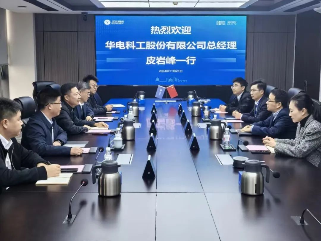 陳棋對皮巖峰一行的來訪表示熱烈歡迎,并重點(diǎn)介紹了運(yùn)達(dá)股份在風(fēng)電整機(jī)裝備制造、清潔能源開發(fā)運(yùn)營、新能源工程總承包、儲能系統(tǒng)產(chǎn)品、智慧能源服務(wù)等領(lǐng)域發(fā)展情況及未來規(guī)劃。他表示,運(yùn)達(dá)股份與華電科工股份有限公司在科技創(chuàng)新、戰(zhàn)新產(chǎn)業(yè)發(fā)展上高度契合,并對公司在海上風(fēng)電建設(shè)、氫能及醇氨業(yè)務(wù)發(fā)展等方面取得的成績給予了高度評價,期望雙方加強(qiáng)溝通交流,發(fā)揮各自優(yōu)勢,形成戰(zhàn)略合作,實(shí)現(xiàn)合作共贏。
