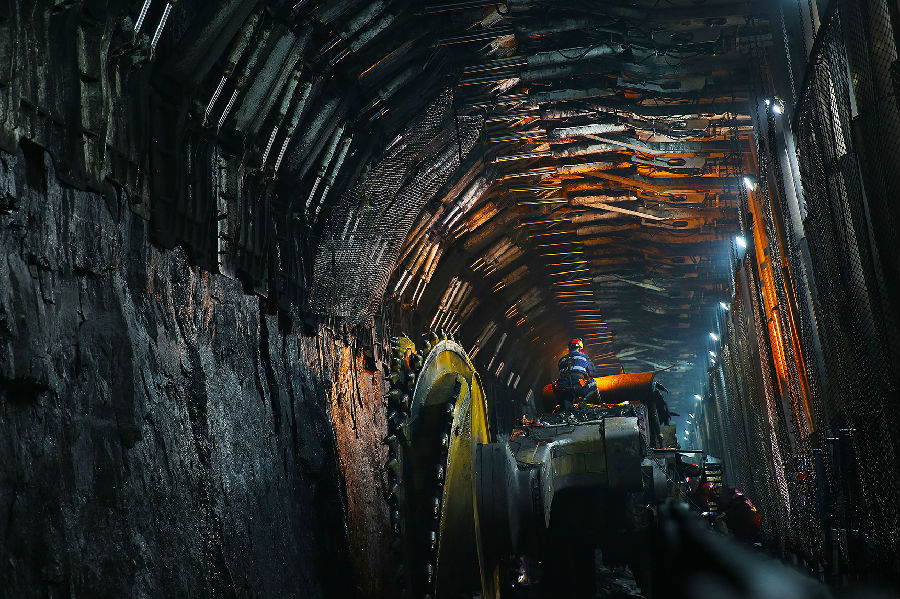 圖為國家能源集團神東上灣煤礦8.8米超大采高智能綜采工作面生產(chǎn)現(xiàn)場