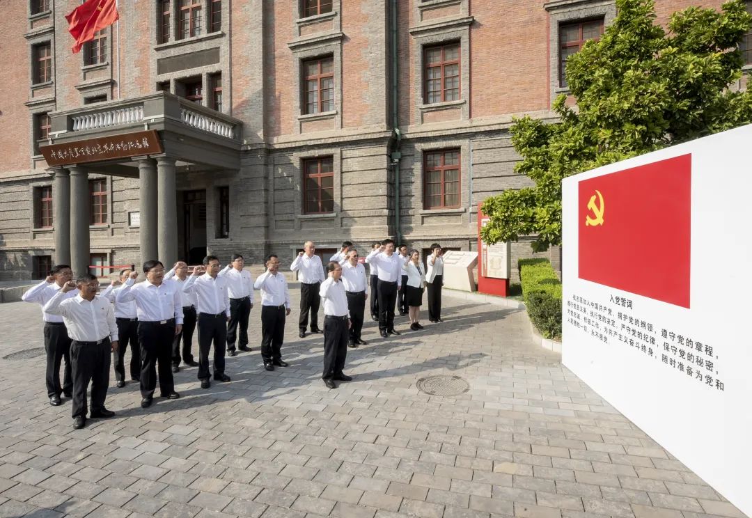在北大紅樓,江毅帶領(lǐng)黨組理論學(xué)習(xí)中心組成員重溫了入黨誓詞,集體參觀了“光輝偉業(yè) 紅色序章——北大紅樓與中國共產(chǎn)黨早期北京革命活動(dòng)主題展”,通過一件件革命文物回顧了李大釗、陳獨(dú)秀等革命先驅(qū)推動(dòng)馬克思主義在中國早期傳播、醞釀和籌建中國共產(chǎn)黨的珍貴歷史。