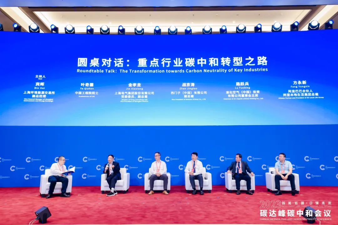 在煙臺(tái)碳達(dá)峰碳中和會(huì)議上,中國(guó)工程院院士葉奇蓁就“重點(diǎn)行業(yè)碳中和轉(zhuǎn)型之路”這一主題,與上海電氣集團(tuán)股份有限公司黨委委員、副總裁金孝龍,西門子(中國(guó))有限公司副總裁戰(zhàn)京濤,液化空氣(中國(guó))投資有限公司董事會(huì)主席路躍兵,阿里巴巴合伙人、阿里本地生活集團(tuán)總裁方永新展開圓桌對(duì)話。