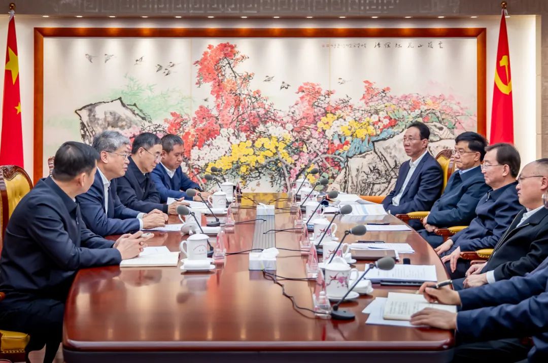 12月5日,國家能源集團黨組書記、董事長劉國躍在昆明拜會云南省委書記、省人大常委會主任王寧。雙方圍繞能源保供、綠色發(fā)展、產(chǎn)業(yè)鏈拓展等領(lǐng)域合作進行座談交流。云南省委常委、省委秘書長邱江,副省長楊斌,集團公司黨組成員、副總經(jīng)理馮樹臣參加會談。