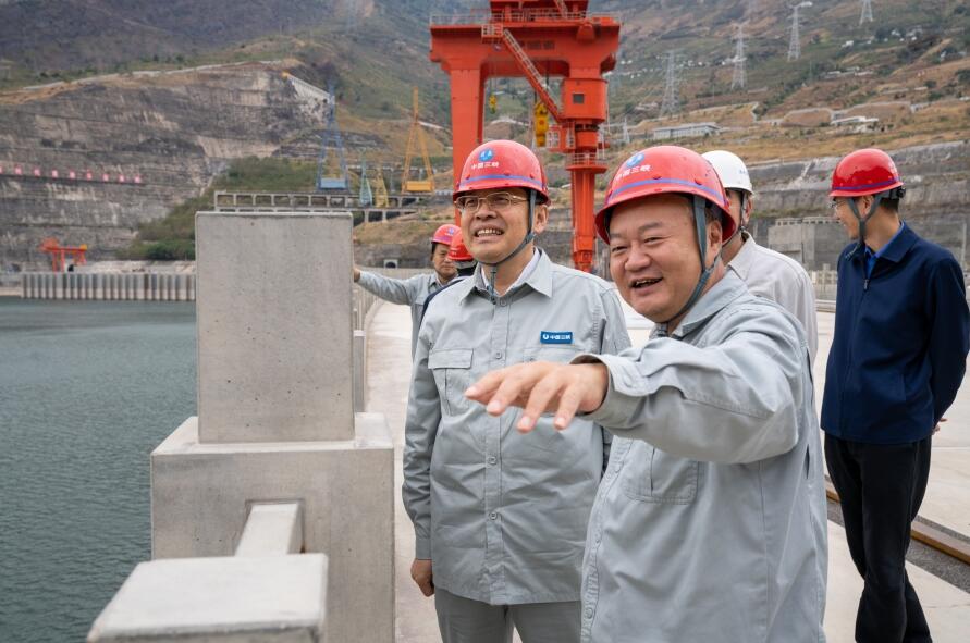 在白鶴灘水電站調研期間,韓君一行先后前往白鶴灘水電站右岸地下廠房、壩后C3平臺、大壩壩頂、集控樓等重點部位察看,詳細了解后續(xù)工程建設和機組運行管理情況。在聽取相關工作匯報后,韓君強調,當前正值迎峰度冬關鍵時期,白鶴灘電廠要確保機組安全生產,服從電網統(tǒng)一調度,全力做好能源保供工作。要嚴格按照三峽集團白鶴灘水電站工程竣工驗收的節(jié)點目標要求,全力推進竣工驗收各項工作,精心完成后續(xù)配套工程建設,實現白鶴灘水電站精品工程完美收官。