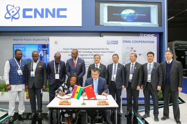 IAEA總干事拉斐爾·格羅西,世界能源理事會(huì)CEO安吉拉,WNA總干事薩瑪·萊昂,加納能源部長馬修·普倫佩,馬拉維能源部長易卜拉欣·馬托拉,法國原委會(huì)副主席皮凱蒂,加拿大核協(xié)會(huì)主席約翰·戈?duì)柭?,法國電力公司董事長呂克·雷蒙,國家能源局總經(jīng)濟(jì)師魯俊嶺、科技部中國國際核聚變能源計(jì)劃執(zhí)行中心副主任王敏、中國電力聯(lián)合會(huì)理事長辛保安等中外領(lǐng)導(dǎo)嘉賓參觀了展臺(tái)。展會(huì)期間,中核集團(tuán)與加納能源部、法國電力集團(tuán)等重要合作伙伴進(jìn)行了雙邊會(huì)談。中國中原與加納核電公司簽署了核電項(xiàng)目合作框架協(xié)議。