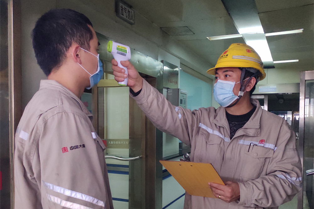檢測體溫 方劍學(xué)是大唐華銀株洲發(fā)電公司發(fā)電部的一名集控運行主操,每天他上班都要經(jīng)過兩次體溫測量和佩戴口罩檢查。在疫情發(fā)生的第一時間,該公司迅速落實戰(zhàn)“疫”保電工作要求,實行生產(chǎn)區(qū)崗哨、集控室準(zhǔn)入制,凡是進(jìn)入公司區(qū)域的人員必須先接受檢查,做到外防輸入、內(nèi)防傳播,確保職工生命安全和機(jī)組發(fā)電安全。