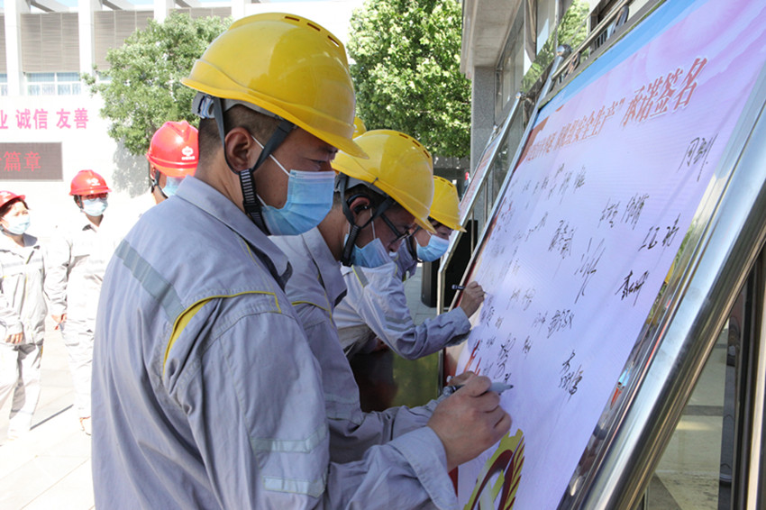 此外,該公司員工紛紛在印有“慶建黨百年華誕,保機組安全生產(chǎn)”的鮮紅橫幅上鄭重簽下了自己的名字,以此表示落實好“安全生產(chǎn)月”各項活動的信心和決心。