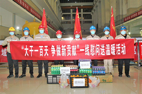 中國電力網(wǎng)訊  為做好“大干一百天、爭作新貢獻(xiàn)”沖刺全年任務(wù)目標(biāo)各項工作和打好能源保供攻堅戰(zhàn),結(jié)合3號機(jī)組A級檢修實際,內(nèi)蒙古大唐海勃灣水利樞紐開發(fā)有限公司工會細(xì)致深入做好做實一線慰問和送溫暖工作,夜間趕赴生產(chǎn)現(xiàn)場對生產(chǎn)一線職工進(jìn)行慰問,將水果、飲料等物品送至職工手中,進(jìn)一步加強(qiáng)對職工的關(guān)心關(guān)愛。