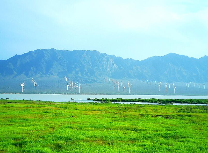 濕地旁的粵水電達(dá)坂城風(fēng)電場