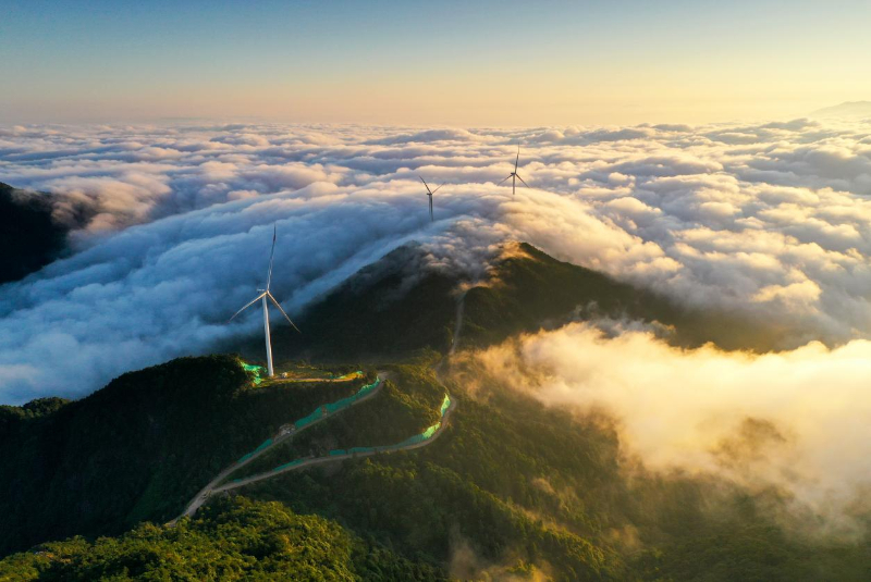 在位于福州的華能長樂光伏電站,金色的陽光灑在平整寬闊的光伏矩陣上,猶如蔚藍的海洋波光粼粼。連城天子壁風電場,云海越過山巔,蜿蜒的山脈與高聳入云的風機交相呼應,轉動出源源不斷的綠色電能。追光而行,馭風而上。從發(fā)出第一度光電,到第一度風電,華能人在閩追風逐光、跨越山海的腳步從未停歇。