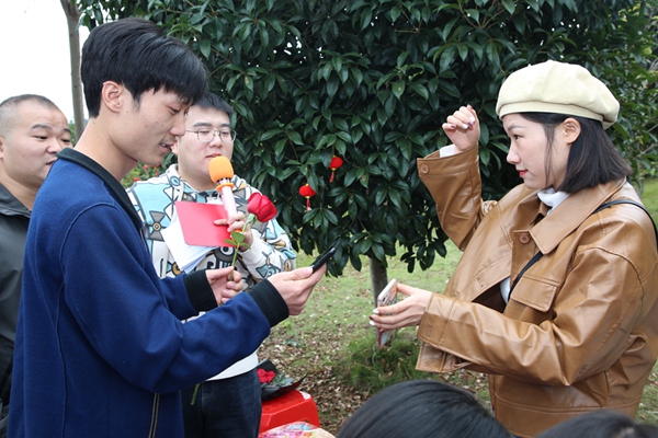 青年聯(lián)誼活動(dòng)在熱情洋溢的氛圍中拉開(kāi)了序幕?;顒?dòng)內(nèi)容包括自我介紹、才藝展示、有獎(jiǎng)?chuàng)尨稹F(xiàn)場(chǎng)分組、游戲環(huán)節(jié)和玫瑰結(jié)緣牽手等。幾輪有獎(jiǎng)競(jìng)答,預(yù)熱了活動(dòng)現(xiàn)場(chǎng)。隨后,各單位隊(duì)長(zhǎng)開(kāi)始挑選隊(duì)員,進(jìn)行分組,分成了紅、藍(lán)、橙、紫4組。在主持人的帶動(dòng)下,每組以競(jìng)賽的方式完成“你演我猜”和“雙龍戲珠”等一系列豐富多彩的游戲環(huán)節(jié),青年男女之間進(jìn)行了一次次的互動(dòng)交流和團(tuán)隊(duì)協(xié)作,緩解了初次見(jiàn)面的緊張羞澀,也讓大家在歡聲笑語(yǔ)中,拉近距離、加深了解,將現(xiàn)場(chǎng)氣氛推向了一個(gè)又一個(gè)高潮。