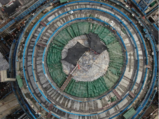 我國自主知識產(chǎn)權“華龍一號”核電站擁有一個顯著特點——使用大容積雙層安全殼,實現(xiàn)功能分離,內殼主要作用是抵御各種事故下及可能的嚴重事故下內部的高溫高壓,外殼主要作用是抵御包括飛機撞擊在內的各種外部災害的作用,保護內殼及其內部結構不受影響。此次完成封頂?shù)氖莾葰ゑ讽?,其半?1米、壁厚1米、高約10米,需要1785.6立方米的混凝土,采用分層澆筑工藝。