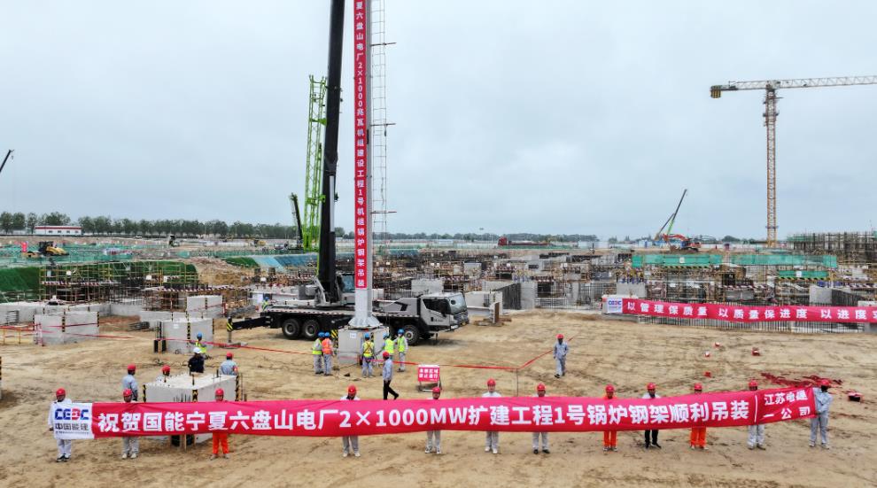 9月6日,由中國能建西北院設(shè)計、江蘇電建一公司承建的國能寧夏六盤山電廠2×1000兆瓦擴建工程1號鍋爐本體鋼結(jié)構(gòu)首根立柱吊裝。