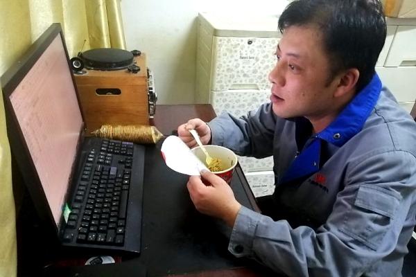 年前,為了讓項(xiàng)目部的兄弟們能回家團(tuán)圓,周?chē)?guó)劍一如既往地選擇了堅(jiān)守。就這樣,這個(gè)春節(jié),泡面是他的主食,餅干就是他的“調(diào)味品”。