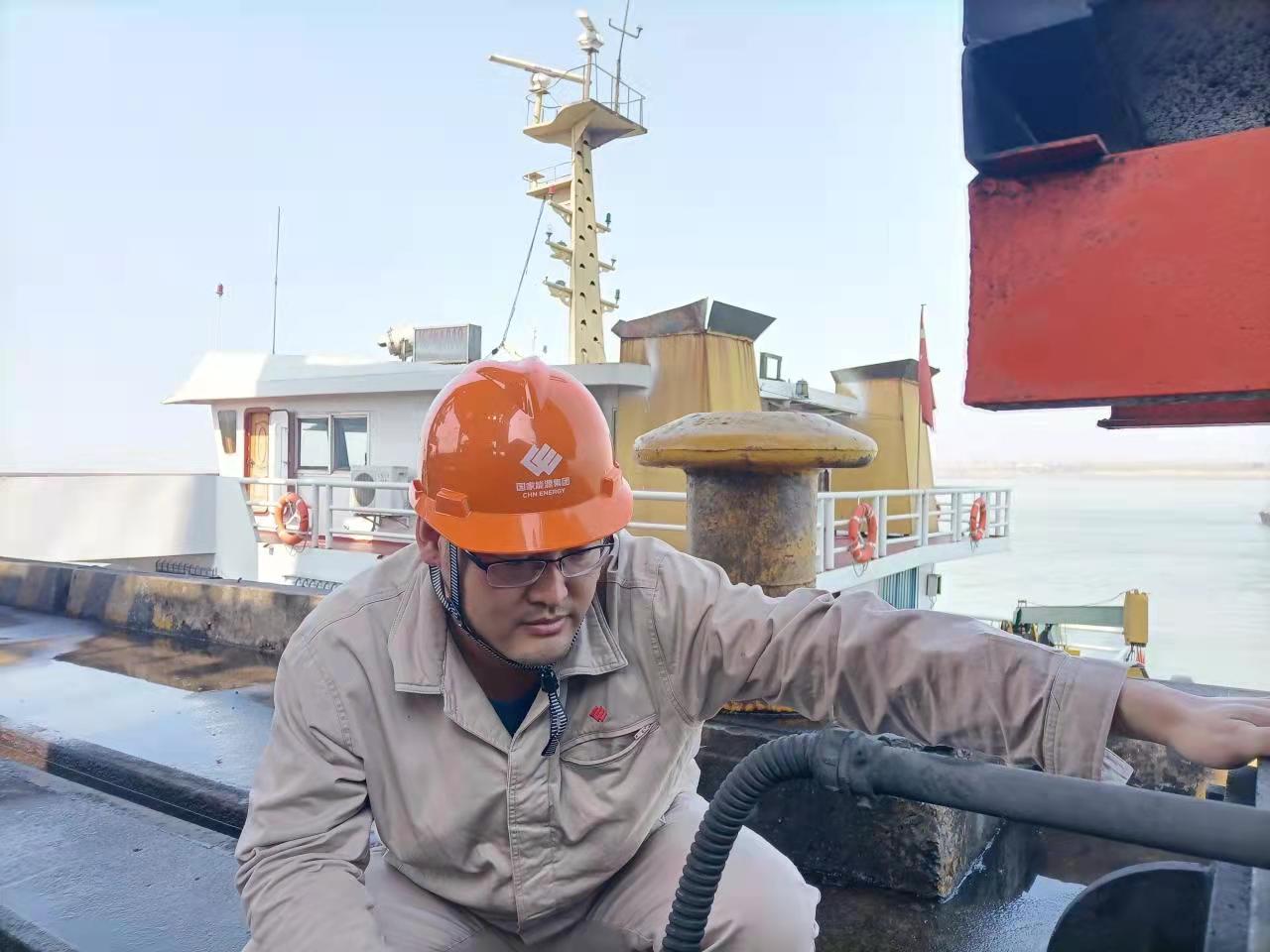 圖為燃料專業(yè)點(diǎn)檢員巡視碼頭卸船橋機(jī)液壓制動(dòng)裝置。