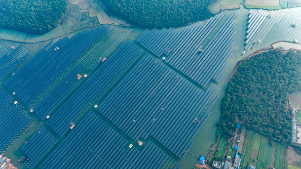 王仁偉,國(guó)家能源集團(tuán)江西公司在余干縣江埠鄉(xiāng)茶從湖光伏項(xiàng)目的打樁負(fù)責(zé)人,來自安徽蚌埠,清脆爽朗、辦事利落。6月底,他接到任務(wù),要在4周內(nèi)打完5792根水泥樁。“四哥”的外號(hào)就這樣被叫起。