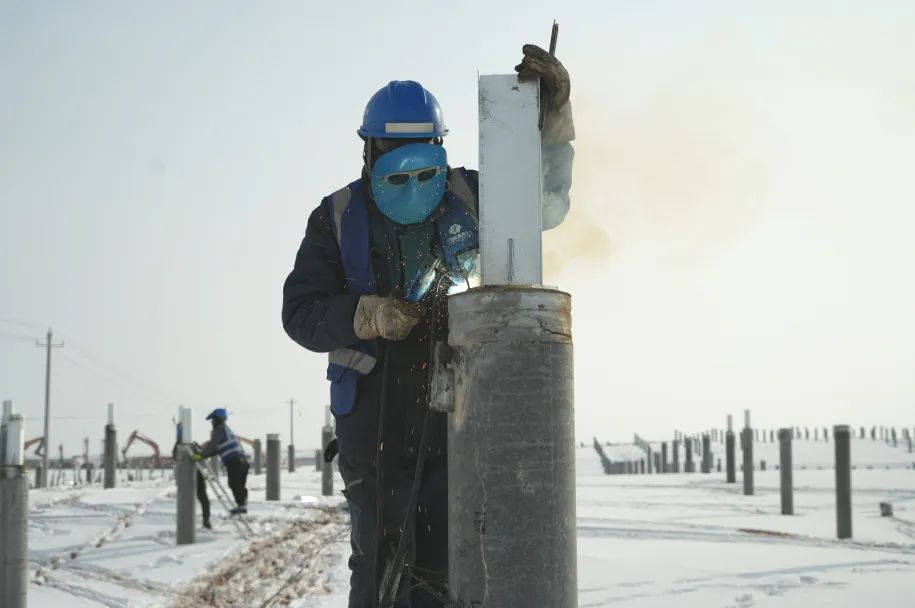 行走在項(xiàng)目現(xiàn)場(chǎng),盡管已經(jīng)立春,但氣溫依舊非常低,寒風(fēng)刺骨。此刻,為保障工程順利推進(jìn),百余名建設(shè)者各就其位忙碌著,一切井然有序??粗?xiàng)目北區(qū)100萬(wàn)千瓦工程密密麻麻的光伏樁,和散落其中焊樁頭、安裝支架的建設(shè)場(chǎng)景,龍?jiān)磳幭墓鞠嚓P(guān)負(fù)責(zé)人說(shuō):“北區(qū)光伏樁有40萬(wàn)根。如此大規(guī)模的項(xiàng)目,時(shí)序管控最為關(guān)鍵。我們目標(biāo)是要打造‘兩高一低’精品工程,從設(shè)計(jì)就已經(jīng)充分考慮后續(xù)的所有管理重點(diǎn),施工工藝、工程質(zhì)量、設(shè)備管控等等,現(xiàn)場(chǎng)施工各標(biāo)段各自為戰(zhàn),時(shí)序緊湊,施工進(jìn)度安全高效快速。”