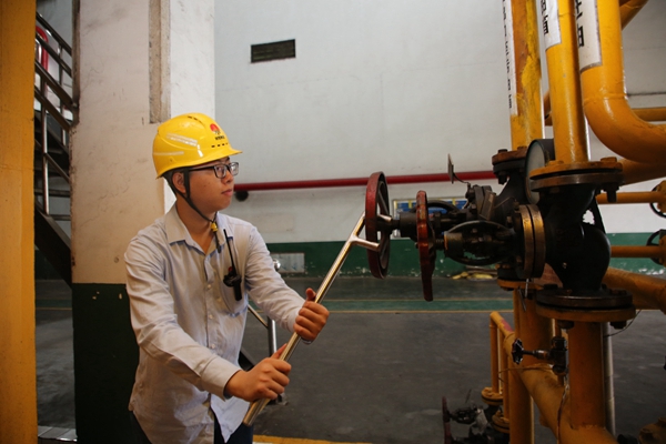“我們這次小修,工期緊,任務重,期間又恰逢國慶,全體檢修參戰(zhàn)人員都堅守在崗位上,沒有假期。”該公司熱機二班班長汪龍和班員陳聶宇正在進行汽包事故放水二次門閥門檢修。