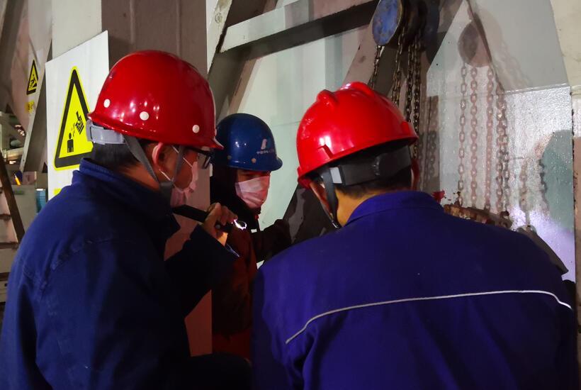 “目前來看,問題只可能是撈渣機底板與導輪間隙有問題或槽體內(nèi)刮板脫落,大家分頭重點排查這兩方面?!痹诖蠹颐H粺o措時,生產(chǎn)副總經(jīng)理徐光學一語點醒夢中人。鎖定“疑兇”,維護部副主任徐德剛迅速組織技術(shù)骨干研討。按照疫情防護需要,幾位專業(yè)行家距離一米以上,“吼”完了研討會,并在較短時間內(nèi)擬定出三個處理方案,但所有方案的前提均是“確定底板情況!”