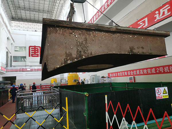 中國電力網(wǎng)訊 近日,內(nèi)蒙古大唐國際海勃灣水利樞紐開發(fā)有限公司在緊鑼密鼓地開展2號機(jī)組A級檢修工作,按照工期計(jì)劃安排,現(xiàn)場檢修工作有序推進(jìn),施工安全、進(jìn)度及質(zhì)量可控在控,開工一周內(nèi),流道蓋板已成功吊出。
