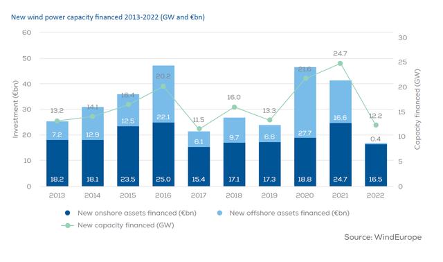 據(jù)報(bào)告,上述投資對應(yīng)新建風(fēng)電場裝機(jī)容量為12.2GW,其中10GW在歐盟。