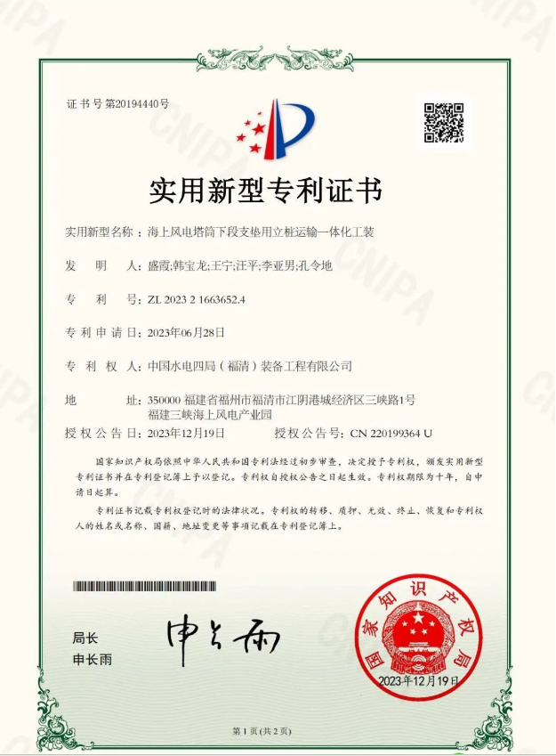該實用新型專利是以海上風電項目中塔筒的下段運輸工裝為研究背景,在運輸車體上安裝固定座及限位座、增設連接耳及推動結(jié)構、固定導向塊及連接座底部安裝阻尼器等,利用弧形卡板和橫杠對下段塔筒進行限位處理,解決了運輸裝置無法對塔筒下段進行有效限位處理的問題,減小了下段塔筒在運輸過程中產(chǎn)生的晃動,提高下段塔筒運輸?shù)姆€(wěn)定性和安全性,運輸效率大幅提升。