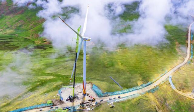 世界屋脊之上,西藏八宿10萬千瓦保障性并網(wǎng)風(fēng)電項目正在火熱建設(shè),助力點亮萬家燈火。項目廠區(qū)海拔最高達(dá)5200米,總裝機(jī)容量為100兆瓦,是目前全球海拔最高的風(fēng)電項目。