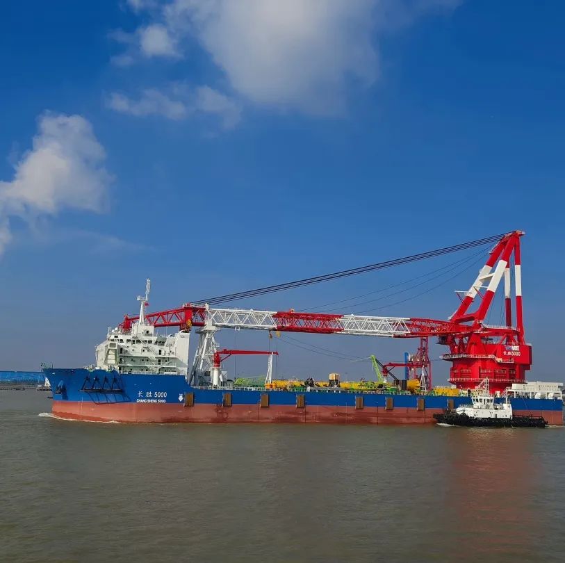 “長勝5000”輪,全長182米,型寬49米,型深15米,最大作業(yè)吃水11米,設計吃水8米,甲板載荷12T/平方米,起重機固定尾吊狀態(tài)下4000TX40M;全回轉(zhuǎn)狀態(tài)下3000TX40M;主要用于海上風電管樁吊裝作業(yè)及大型構(gòu)件起重作業(yè),由南通振華重型裝備制造。該輪出江后,將直接拖往廣東惠州,致力于海上風電項目建設。