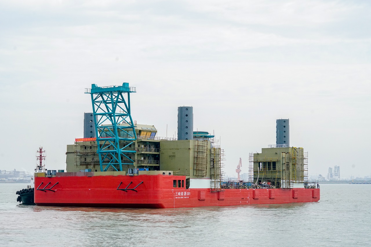 4月20日,伴隨著一陣響亮的鳴笛聲,三峽集團首艘海上風(fēng)電安裝平臺“三峽能源001號”在江蘇揚中造船廠順利下水。