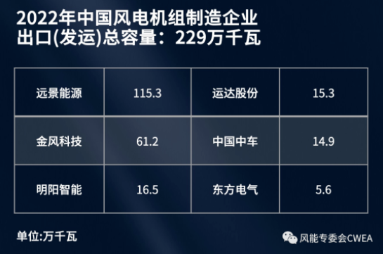 2022年,中國新增風(fēng)電機(jī)組出口(發(fā)運(yùn))容量為229萬千瓦,累計(jì)出口(發(fā)運(yùn))容量達(dá)1193萬千瓦,出口設(shè)備已遍布全球5大洲共49個(gè)國家。