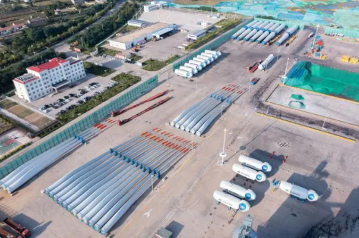 乳山市乳山港海上風電設備陸地中轉(zhuǎn)現(xiàn)場圖(央廣網(wǎng)發(fā) 段文奇供圖)