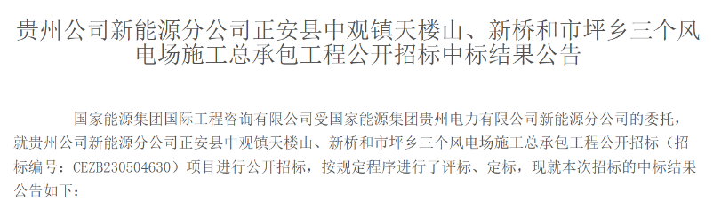 公告顯示,中國電建集團(tuán)貴州工程有限公司成功中標(biāo)該項(xiàng)目,中標(biāo)價格為29242.222800萬元。