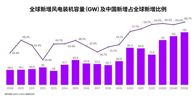 未來三年,全球新增風(fēng)電裝機(jī)容量將保持15%以上的復(fù)合增長率,突破375GW,中國風(fēng)電新增裝機(jī)容量占全球比重預(yù)計(jì)將保持在50%以上,持續(xù)引領(lǐng)全球風(fēng)電增長。