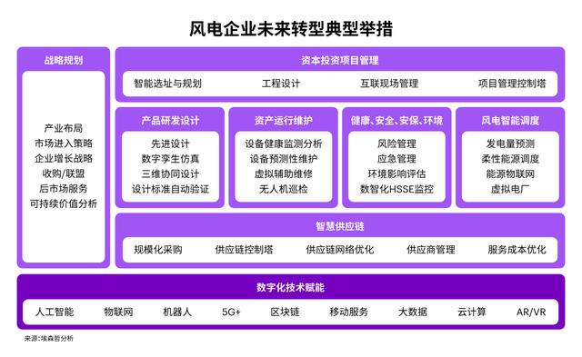 人工智能、物聯(lián)網(wǎng)、AR/VR、5G等數(shù)字技術(shù)快速發(fā)展,成為了風(fēng)電企業(yè)轉(zhuǎn)型的強(qiáng)大助力,通過將數(shù)字化、智能化解決方案嵌入核心業(yè)務(wù)及全產(chǎn)業(yè)鏈,更有效支撐企業(yè)運(yùn)營管理優(yōu)化。