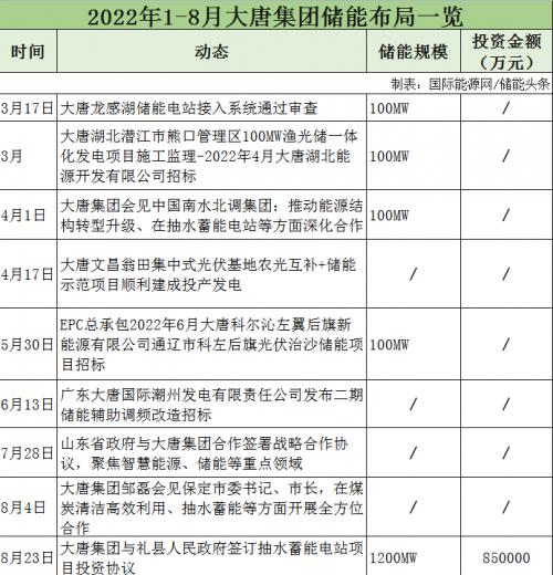 據(jù)不完全統(tǒng)計,2022年1-8月,大唐集團儲能項目招標3個,與山東、保定、南水北調(diào)集團等簽訂合作協(xié)議,涉及抽水蓄能、智慧能源等領域。