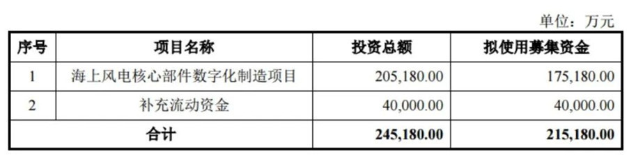 12月12日,金雷科技股份公司(簡稱“金雷股份”)發(fā)布《向特定對象發(fā)行股票募集說明書》(修訂稿),擬募集資金21.52億元,用于海上風電核心部件數(shù)字化制造項目(17.52億元)和補充流動資金(4億元)。