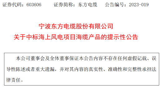 東方電纜(603606)于5月23日發(fā)布公告稱,近日,寧波東方電纜股份有限公司(以下簡稱“公司”)陸續(xù)收到《中標通知書》,確認公司為相關(guān)項目中標人,現(xiàn)將具體中標情況公告如下: