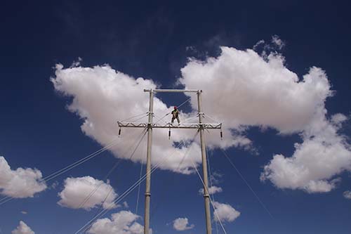 項(xiàng)目架空線路桿塔共計(jì)668基,12種桿塔型式。桿塔是在35kV架空線路架設(shè),線路總長(zhǎng)度約122.21km,塔高為15-21米,屬于高空作業(yè)。施工現(xiàn)場(chǎng)干旱炎熱,沙塵暴和冰雹也常常輪番“光顧”,給施工進(jìn)度和安全管理帶來(lái)不小的挑戰(zhàn)。在桿塔組立作業(yè)前,項(xiàng)目部組織協(xié)作隊(duì)伍召開(kāi)專題安全會(huì),施工隊(duì)長(zhǎng)徐少帥堅(jiān)持對(duì)現(xiàn)場(chǎng)的施工操作人員進(jìn)行詳細(xì)的安全、技術(shù)、質(zhì)量交底工作;質(zhì)量安全科林周彬堅(jiān)持每天現(xiàn)場(chǎng)巡查,要求高空作業(yè)人員必須持證上崗,且具有合格的體檢報(bào)告;施工過(guò)程中,施工現(xiàn)場(chǎng)拉起安全警戒線、懸掛安全警示標(biāo)識(shí),安全員全程旁站監(jiān)督,確?,F(xiàn)場(chǎng)施工安全質(zhì)量可控。