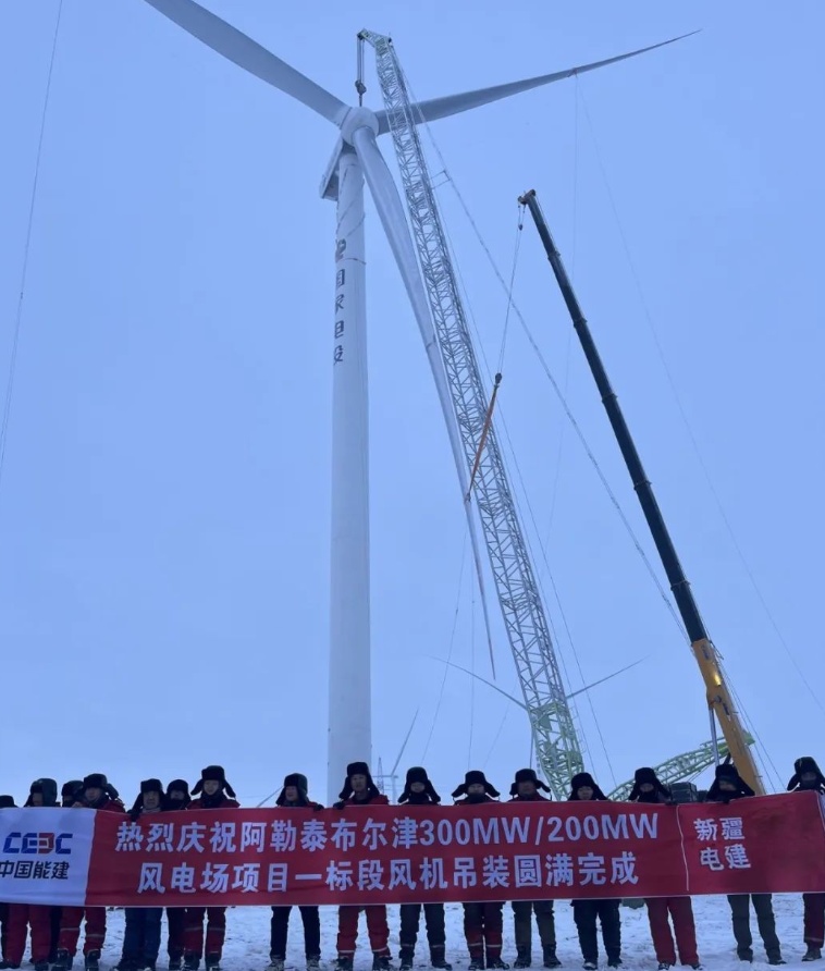 2024年1月1日,中國(guó)能建新疆電建承建的阿勒泰20萬千瓦/80萬千瓦時(shí)(配置80萬千瓦新能源)儲(chǔ)能項(xiàng)目-布爾津區(qū)域30萬千瓦風(fēng)電EPC工程總承包項(xiàng)目一標(biāo)段風(fēng)機(jī)安裝工程全部風(fēng)機(jī)吊裝圓滿完成,為后續(xù)推進(jìn)全面并網(wǎng)發(fā)電奠定了堅(jiān)實(shí)基礎(chǔ)。