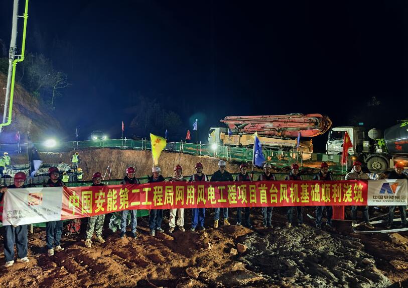 云南阿用風(fēng)電項(xiàng)目首臺(tái)風(fēng)機(jī)基礎(chǔ)順利澆筑完成
