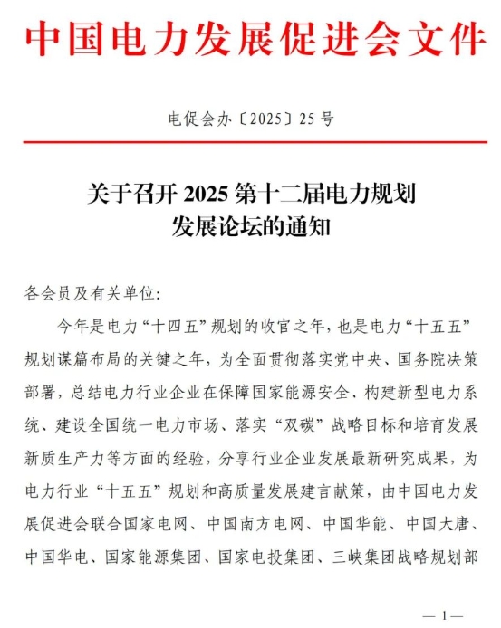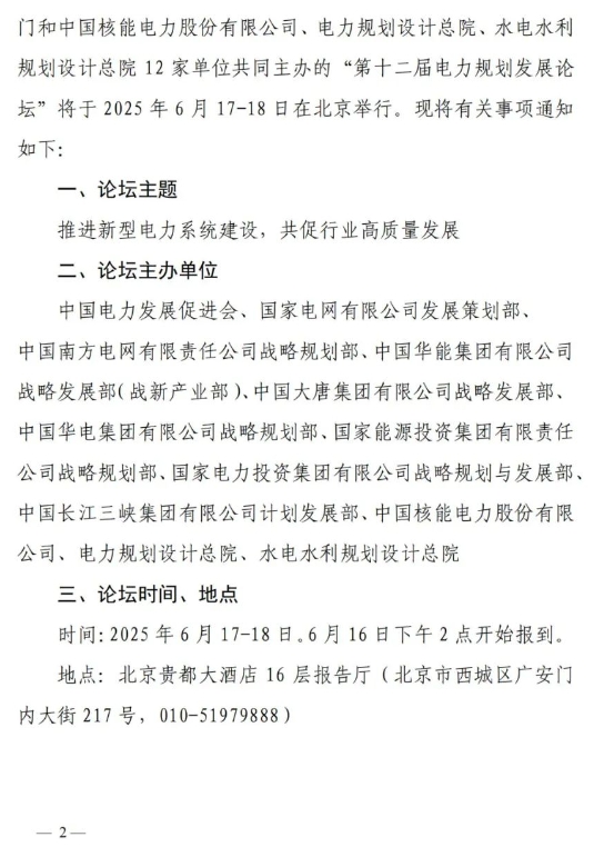 關于召開2025第十二屆電力規(guī)劃發(fā)展論壇的通知