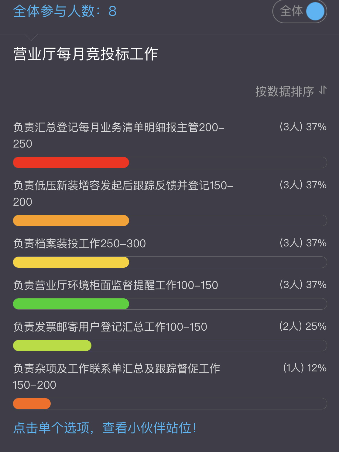 據(jù)了解,國網(wǎng)寧??h供電公司營業(yè)廳為了解決日常業(yè)務(wù)受理以外的工作分配困難的問題,自2019年1月份開始,對于日常受理之外的部分工作每月采取“競標(biāo)”模式進行工作布置。“競標(biāo)”模式其實就是將我們?nèi)粘5墓ぷ魅蝿?wù)變成“商品”,精益積分變成“貨幣”,班長化身為“主持人”,班員就是“競標(biāo)者”。