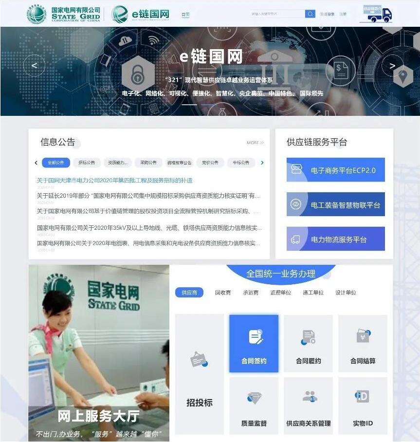 “e鏈國網(wǎng)”一站式服務(wù)門戶構(gòu)建現(xiàn)代智慧供應(yīng)鏈業(yè)務(wù)體系統(tǒng)一的PC前端窗口,以新一代電子商務(wù)平臺ECP2.0、企業(yè)資源系統(tǒng)ERP、電工裝備智慧物聯(lián)平臺EIP、電力物流服務(wù)平臺ELP、供應(yīng)鏈運(yùn)營中心ESC等核心系統(tǒng)作為底層業(yè)務(wù)支撐,向內(nèi)外部用戶提供供應(yīng)鏈相關(guān)的業(yè)務(wù)流程和信息服務(wù),提升對內(nèi)部用戶、供應(yīng)鏈伙伴的服務(wù)水平。