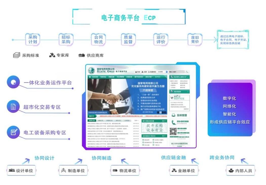 ECP包括采購標(biāo)準(zhǔn)管理、招標(biāo)采購管理、物資供應(yīng)管理、質(zhì)量監(jiān)督管理、供應(yīng)商管理、報(bào)廢物資競價(jià)管理、供應(yīng)鏈金融七大應(yīng)用模塊。