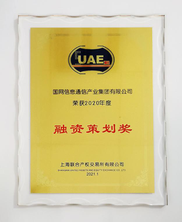 國網(wǎng)信通產(chǎn)業(yè)集團(tuán)榮獲上海聯(lián)合產(chǎn)權(quán)交易所 2020年度“融資策劃獎(jiǎng)”