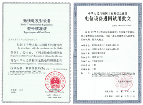 圖 1 電力5G 增強型通信終端獲得型號核準證及進網(wǎng)許可證